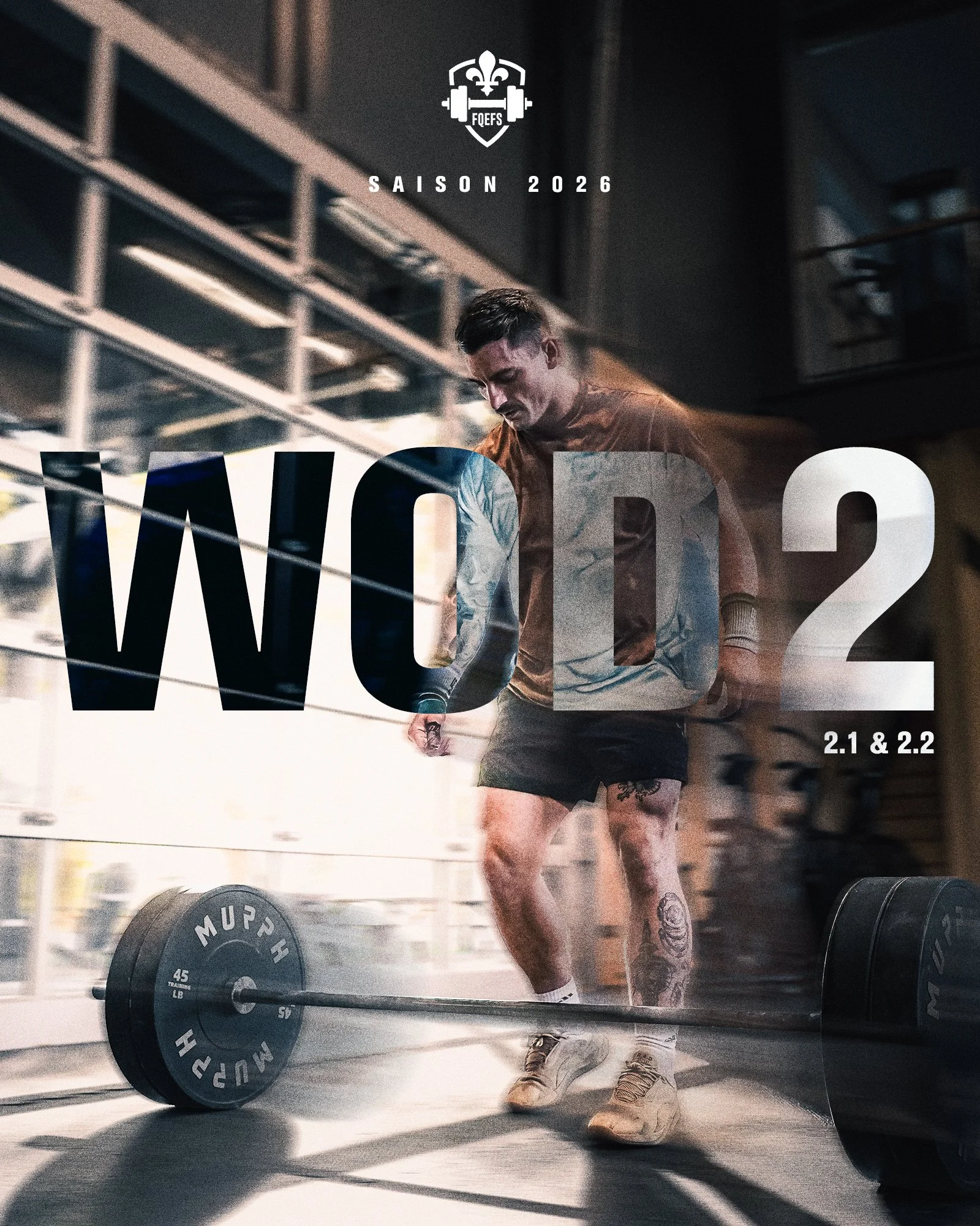 WOD 2.1 est un FOR TIME de 20 minutes. Le score est le temps pour compléter l’entièreté du WOD.