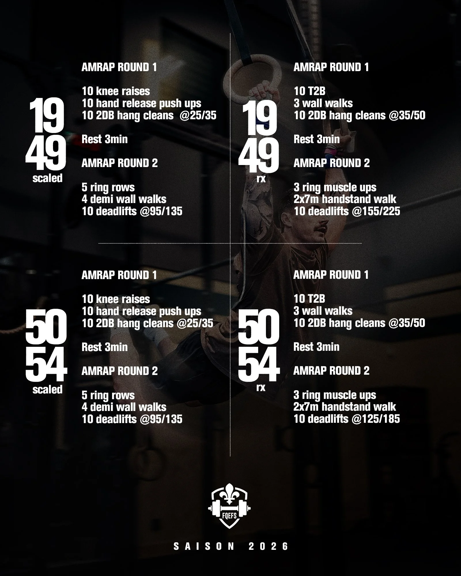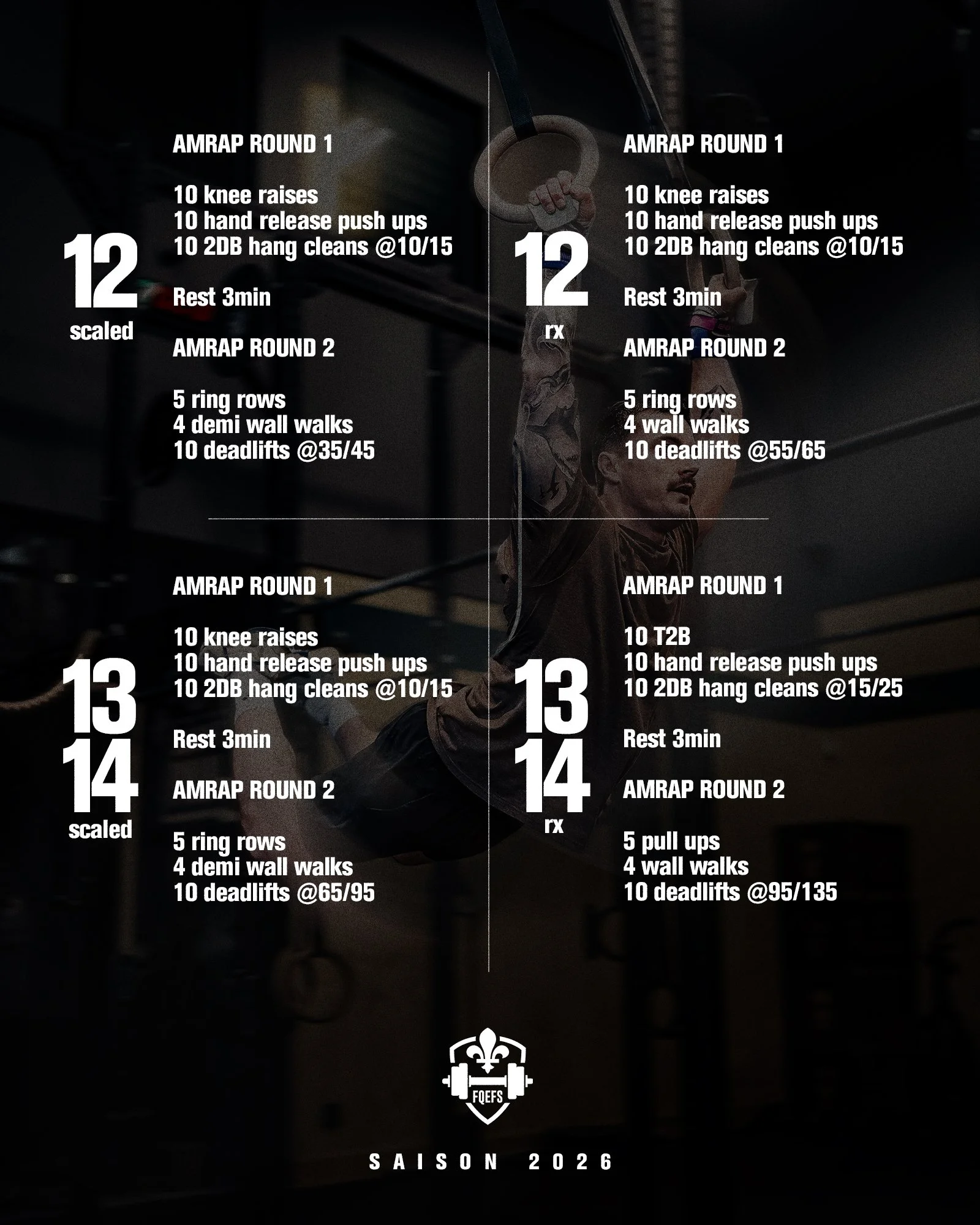2 AMRAP 7 minutes avec une pause de 3 minutes obligatoire entre les 2.